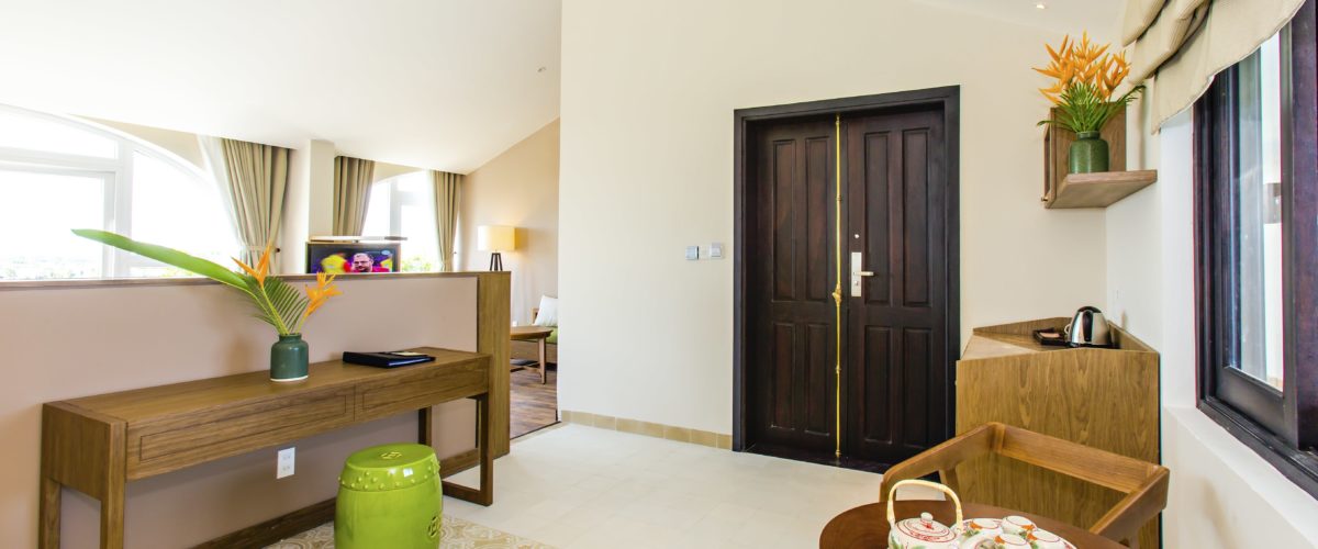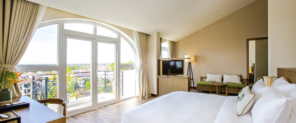 Extensive rooftop suite room of 60 m2, with two big windows and spacious balcony with a stunning view of the city and surrounds. A separate adjoining lounge area, working desk, pantry, dining area and spacious en-suite bathroom with bathtub and shower.