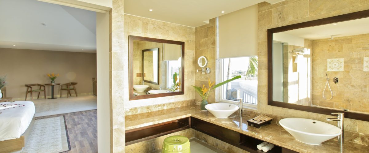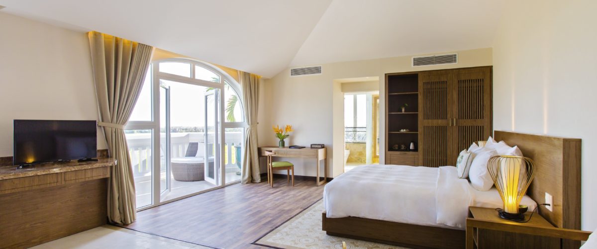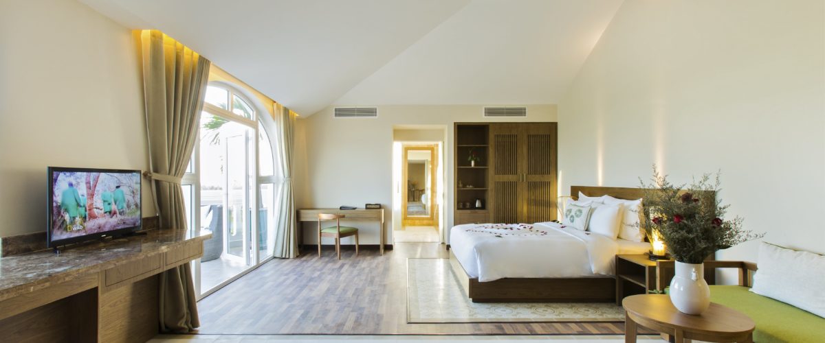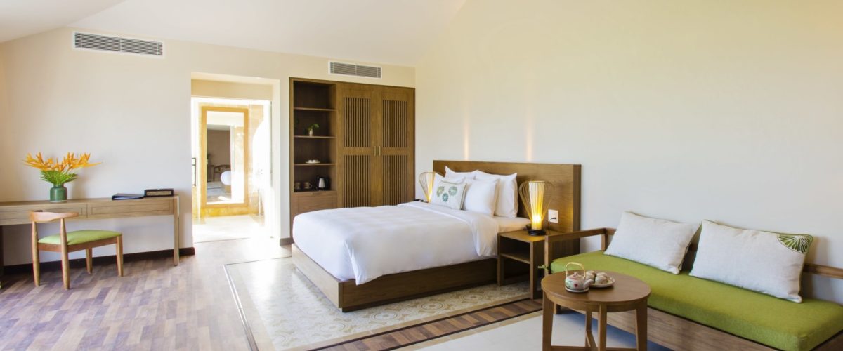 Stylish rooftop suite of 71 m2 with two big windows and accessible roof terrace with sun chairs and a stunning view of the rice field. A spacious and comfortable lounge area, working desk, pantry area, dining area and spacious en-suite bathroom with bathtub and shower.