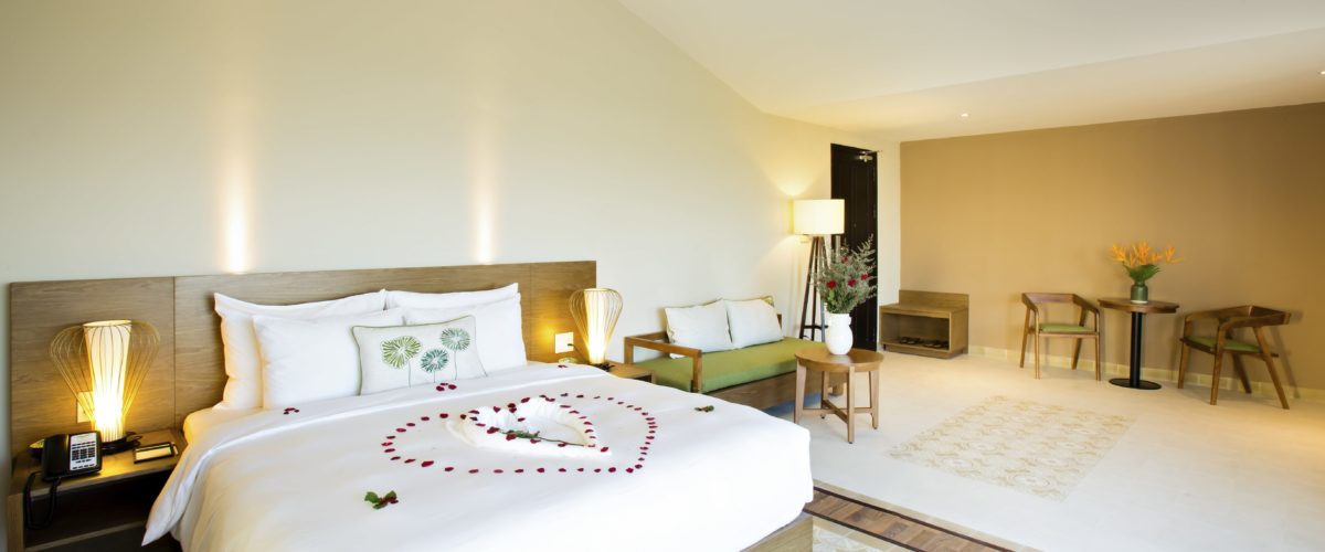 One king-size (180 x 200 cm); extra bed can be arranged with surcharge.